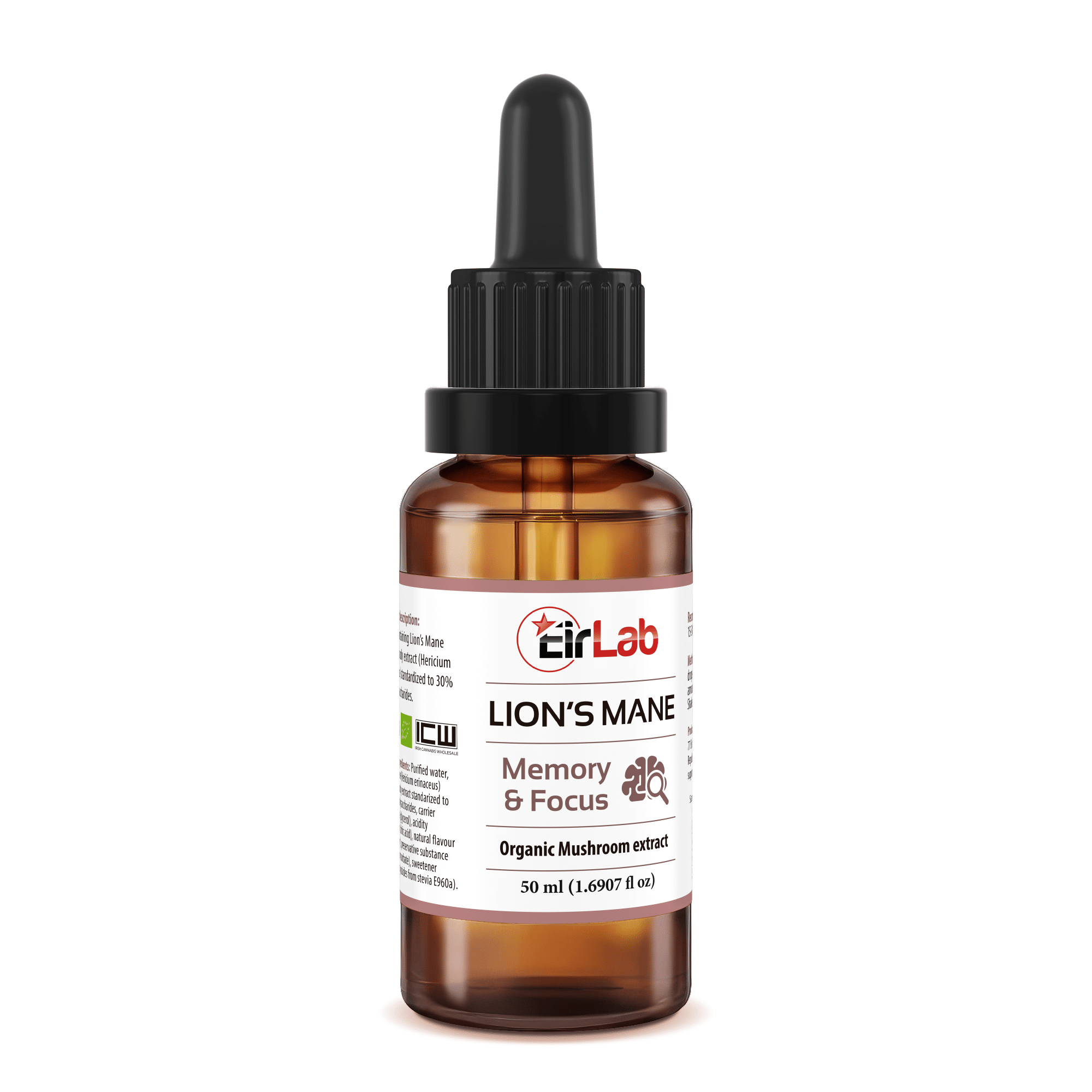 EIRLAB Lions mane mushroom tincture is produced in Ireland using only organic ingredients. 100% Natural.
